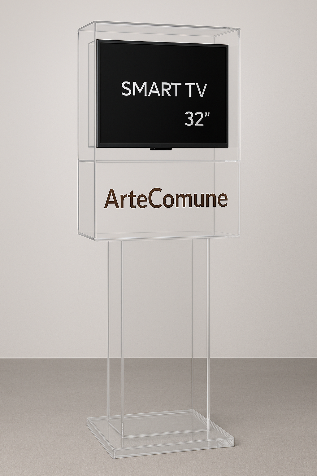 Innovazione – Totem multimediali trasparenti e Smart TV trasformano la fruizione artistica in esperienza digitale immersiva.